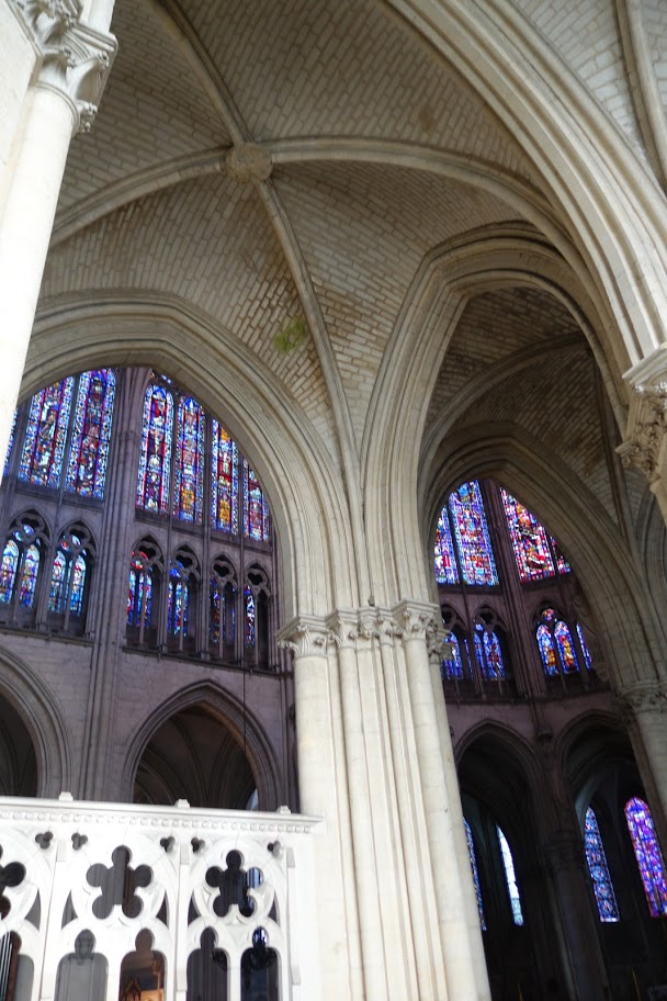 The Cathedral of St Peter and St. Paul in Troyes, begun in 1208 and built over four centuries, must still have been a thing of wonder when the city went up in flames. Chagall notwithstanding, Troyes upstages Reims when it comes to stained glass. The Aube region, of which it is now administrative capital, has the word’s highest concentration of it. A museum of the art is under development there. The cathedral has fine rose windows. One the north aisle is the “pressoir mystique”, a remarkable 1625 window by a local master, Linard Gonthier, in which blood flows from a wound in Christ’s body into a wine chalice.