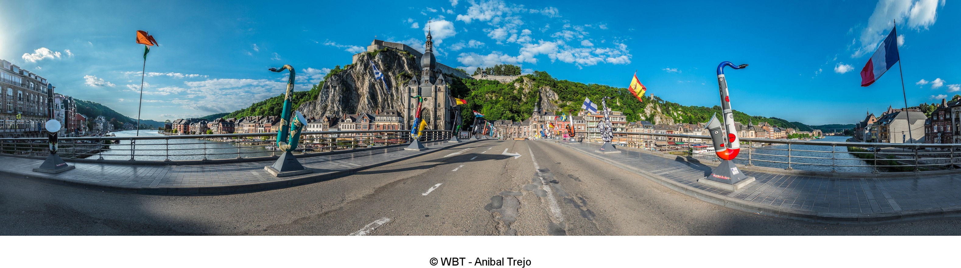 There’s another sax related surprise in Dinant. The town sits on the River Meuse. Crossing the river in the centre of Dinant is the Charles de Gaulle Bridge. The former French president was shot in the leg during WWI as he passed through Dinant. A statue at one end of the bridge tells the story. But you probably won’t be looking at the statue because along both sides of the bridge are a total of 28 large, multicoloured, stylised saxophones. Erected in 2010 to represent the European Union and the instrument’s connection with the town, each sax is decorated to represent a different European country.